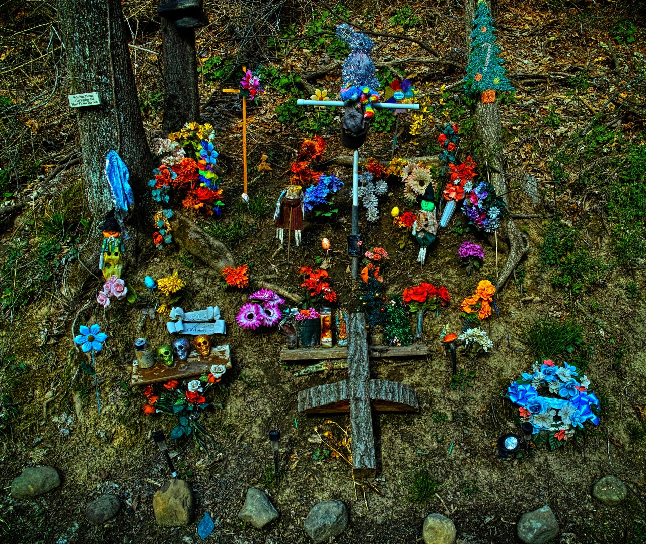 On the return trip from Ellenville, on Berme Road just past the prison, we ran into this roadside shrine. One hypothesis is that it was the scene of a fatal car accident, which would be odd because Berme Road is so torn up I can’t imagine anyone going fast enough to hurt themselves on it. (This picture also, incidentally, illustrates the resolving power of the Foveon sensor in the Sigma DP1 Merril. The second and third pictures are crops from the first).