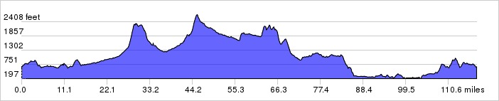 Here’s the route, and the GPS is here. We went off course a few times, sometimes deliberately and not so deliberately, adding and subtracting miles.