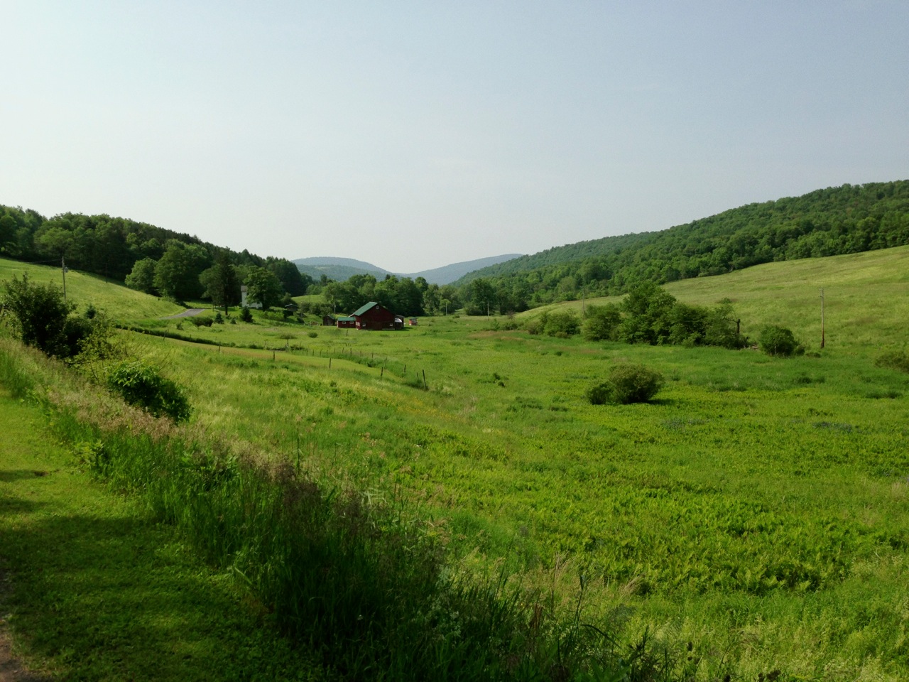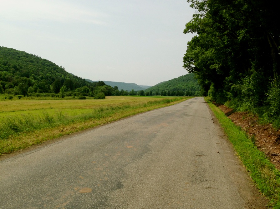Although I live full-time in Boston, I have a vacation home in Bloomville and enjoy stitching together dirt road loops in the area whenever I’m up there, usually during vacations in the summer or on extended weekends. I just kicked off a two-week vacation by riding an easy 36 mile route which begins and ends at the Catskill Scenic Trail head in Bloomville. The ride started off with lots of unpaved roads, and over 2200 feet of climbing in the first 16 miles. After that were seven miles of descent, and finally gentle rollers, mostly paved.