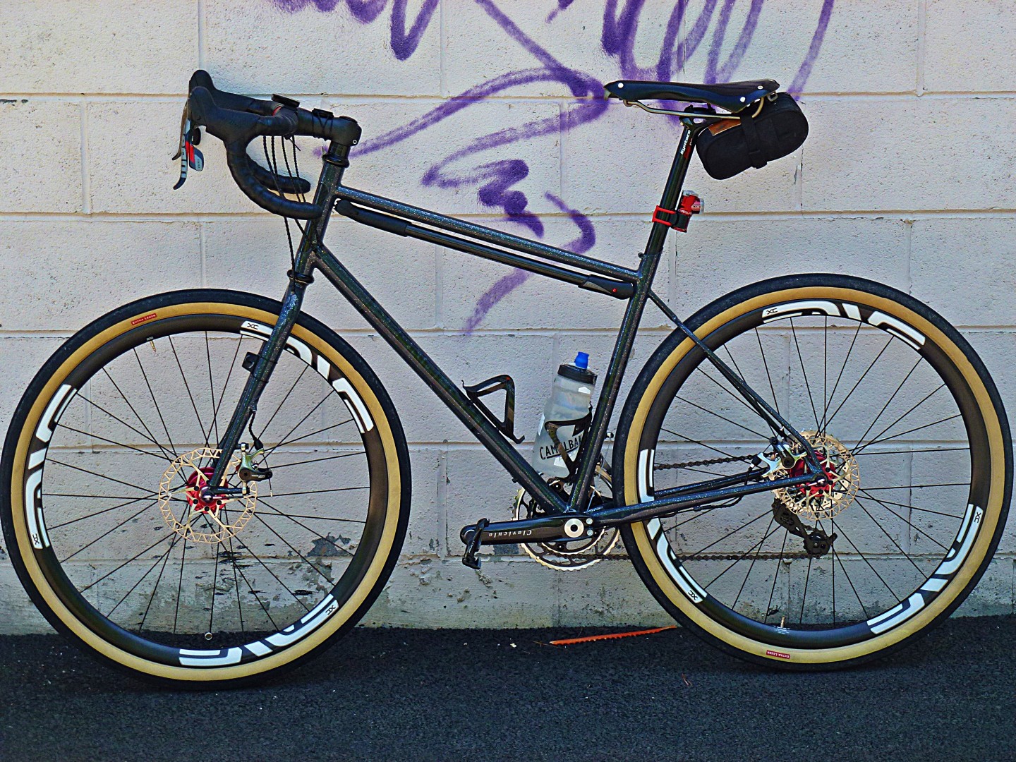 After Davis Rd the route loops back around, following some more dirt and ending up on Monroe Rd, the last dirt road of the route (with the exception of some more trail at the end of the route). Checkerboard fields fill the view, divided by grids of tree-lined roads like a patchwork quilt on a lumpy bed. A continuous two mile descent follows. I hadn’t ridden this particular road before and I experience a near panic moment when I realize it comes to an abrupt stop just as the descent reaches its steepest, at 15% grade. It T-intersects Elk Creek road, where I am greeted by grazing sheep against the backdrop of a steep forested hill. My house is just over the other side of that hill, a mile away as the crow flies, but the shortest rideable route to it is another eight miles. I don’t go this route, instead opting to take an even longer way back.