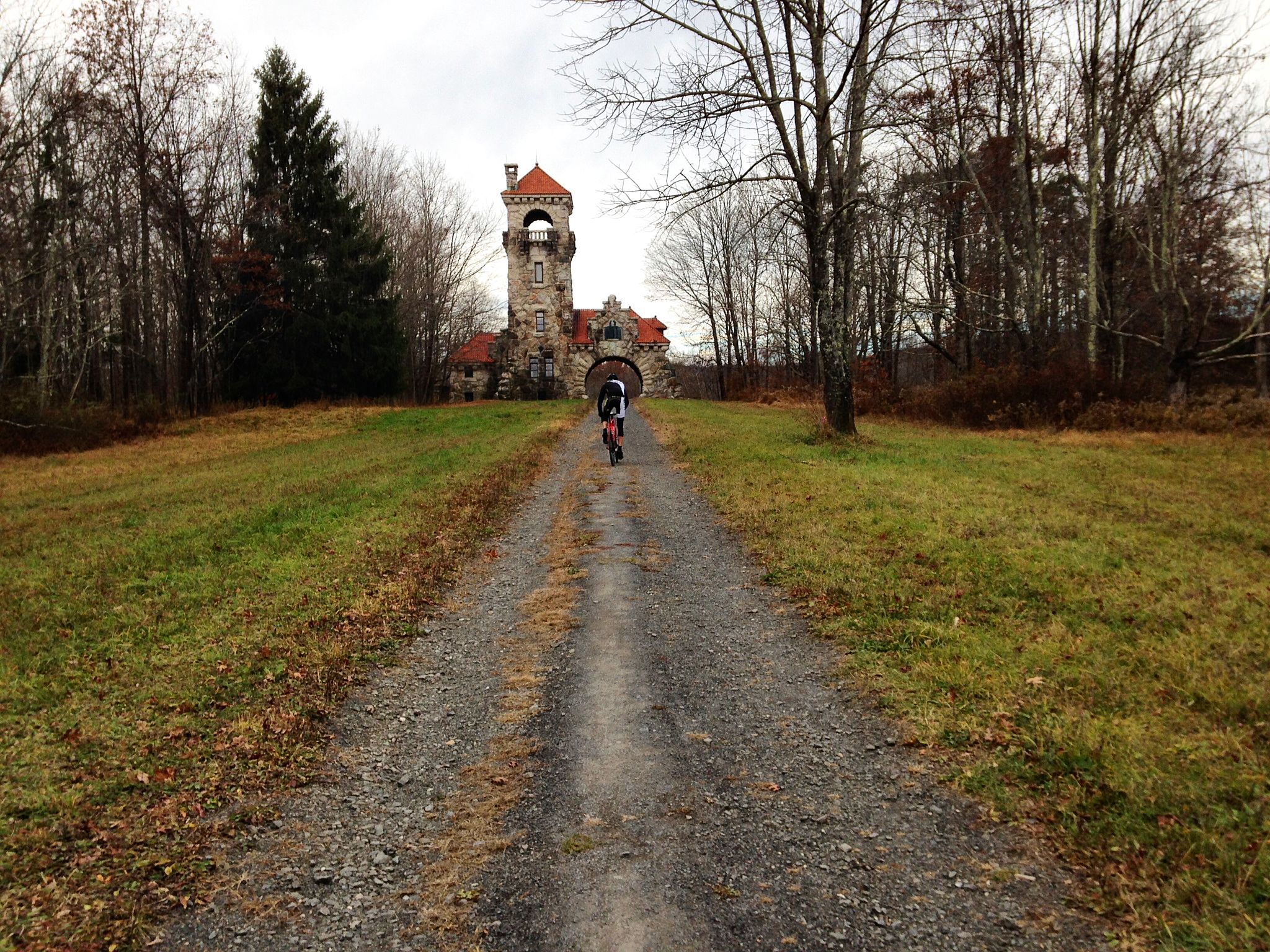 The first few miles out of town, heading toward the ridge, are highly exposed and the wind was whipping across the razed farm fields. Once we pushed through that section, we couldn’t resist riding through the old Mohonk gatehouse.