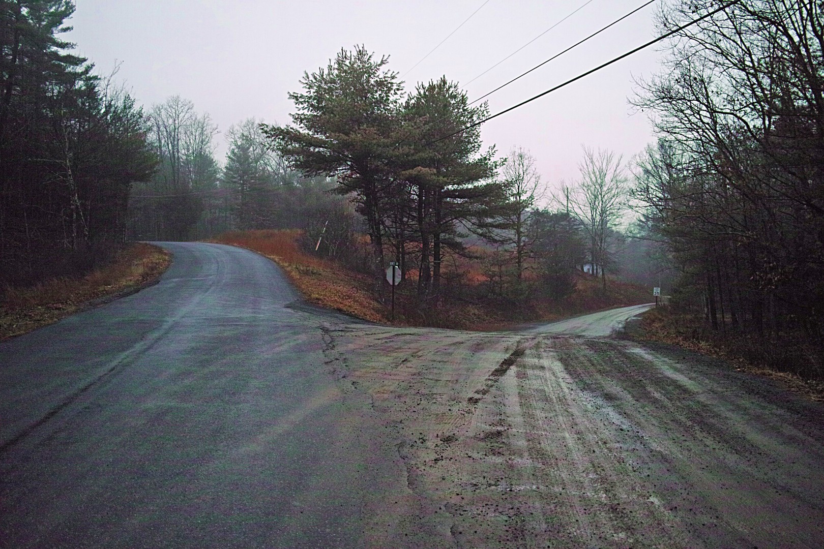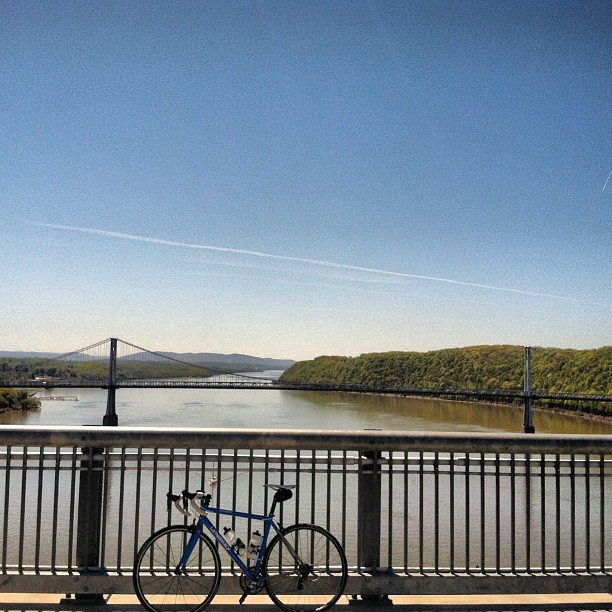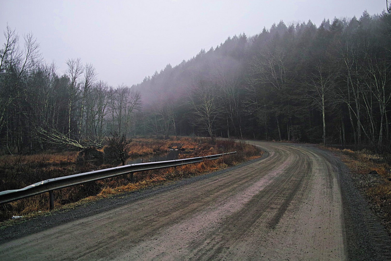 Visibility was not great in the low-lying areas, so I headed up toward the Catskills. I was also curious how 42×16 would work on some of the more significant hills up toward Woodstock. It turned out to be mostly fine, up to maybe 10% grade; I could manage a cadence of somewhere around 20 and still keep the bike moving forward without either weaving like a drunken mailman or hauling hard enough on the pedals/bars to rupture my spleen.