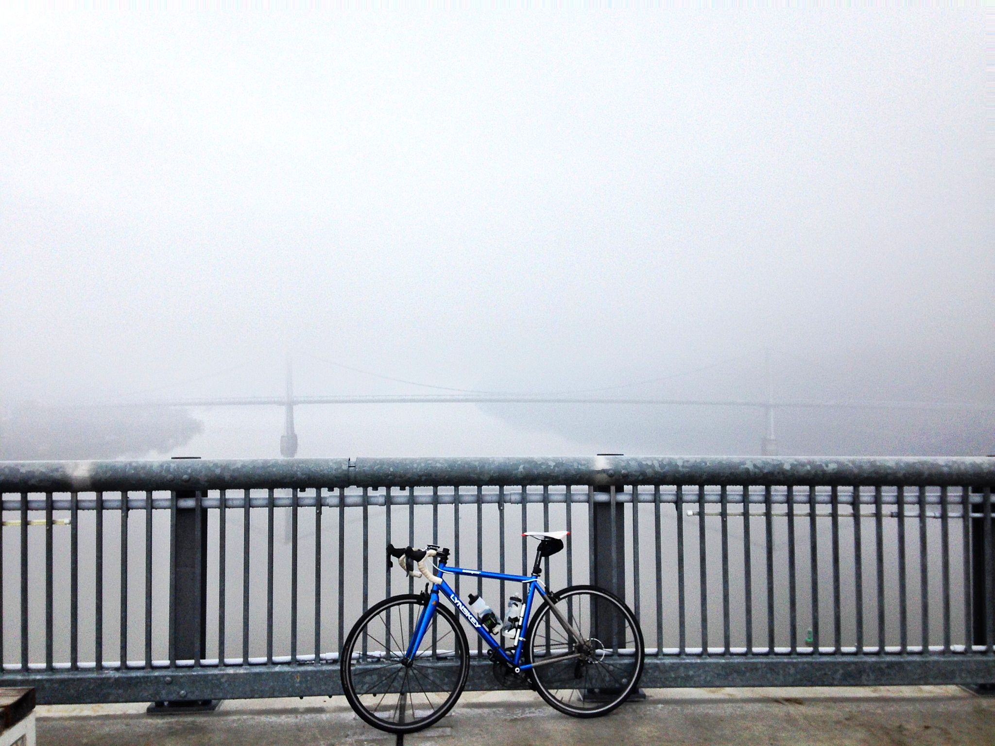 I had to take the bike out for an inaugural ride on day one, even though it was 40 degrees, foggy and raining.