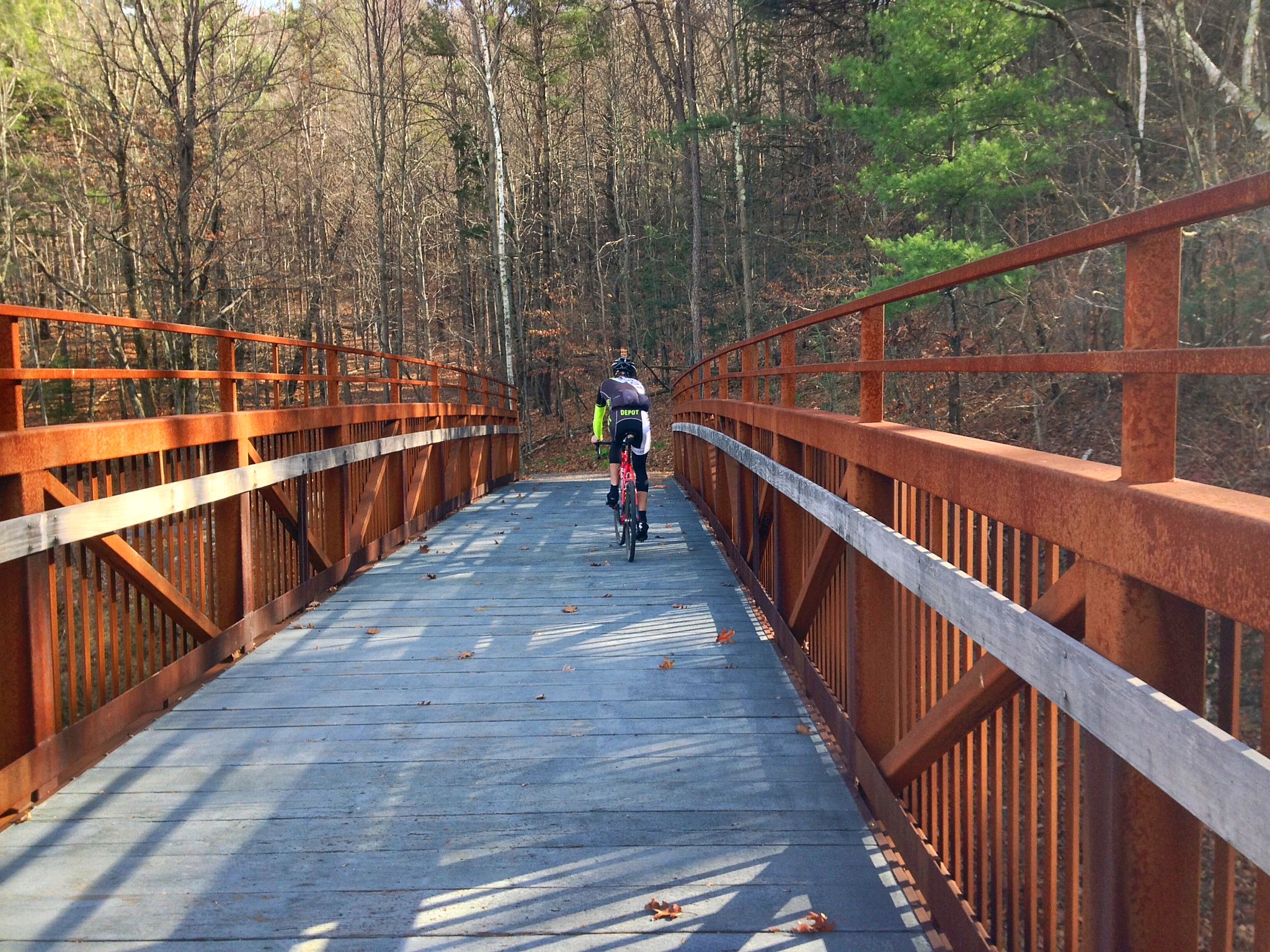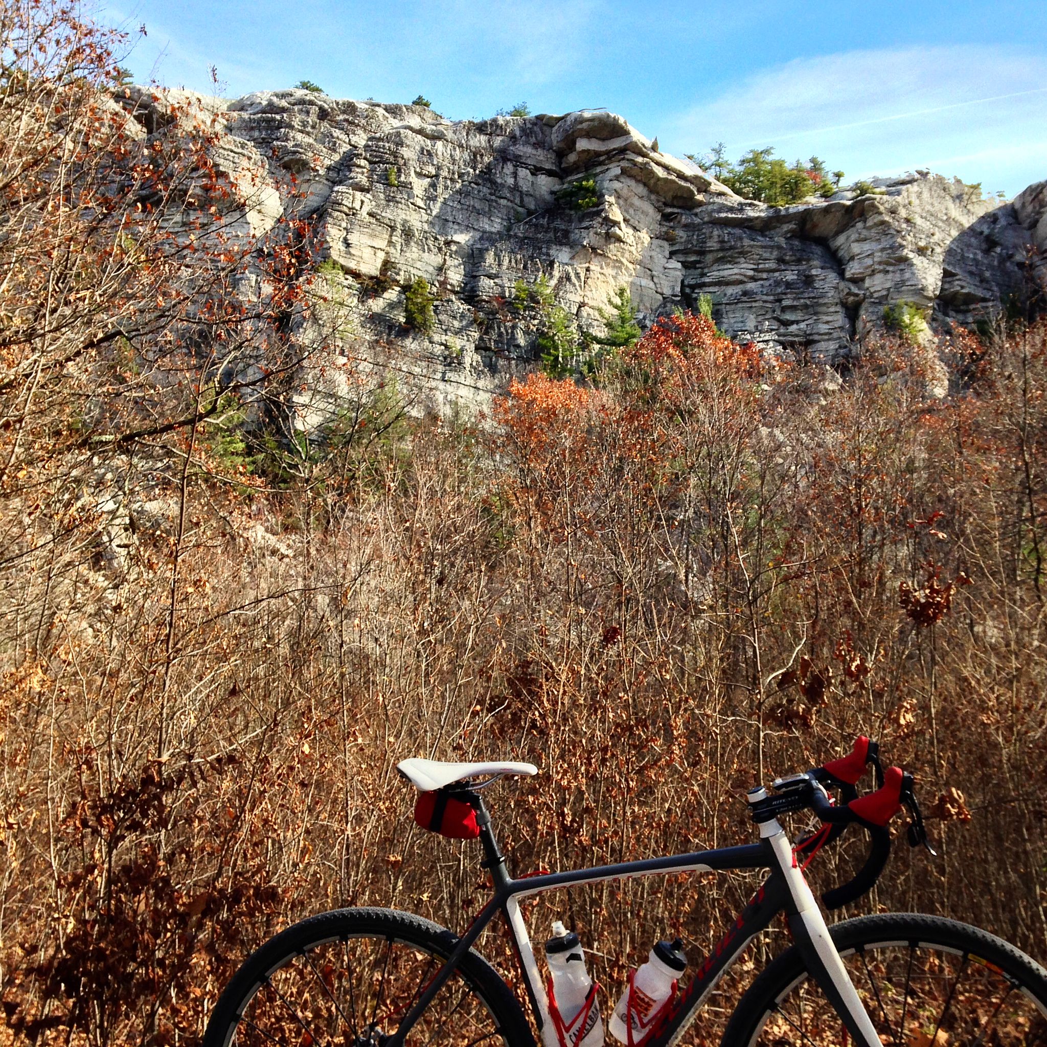 This is a popular tourist destination for cyclists, hikers, leaf peepers and rock climbers, so it’s hardly a secret backwoods passage. But even on a perfect late fall day like today, with sunny skies and temperatures in the 50s, we saw only a handful of people all day — a couple of rock climbers, a few hikers, and a couple of cyclists.